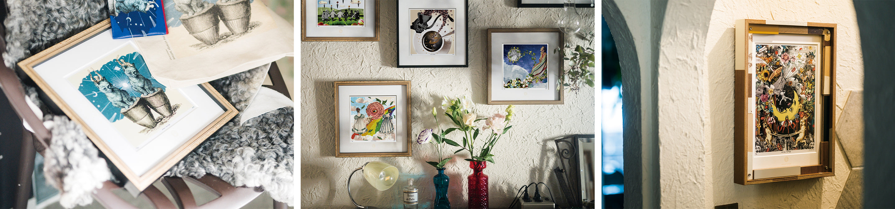100枚近くある絵画の中から「服を選ぶように絵画を選ぶ」新しい感覚をお楽しみください。全てエディション付き、こだわり抜いた額もご用意しております。