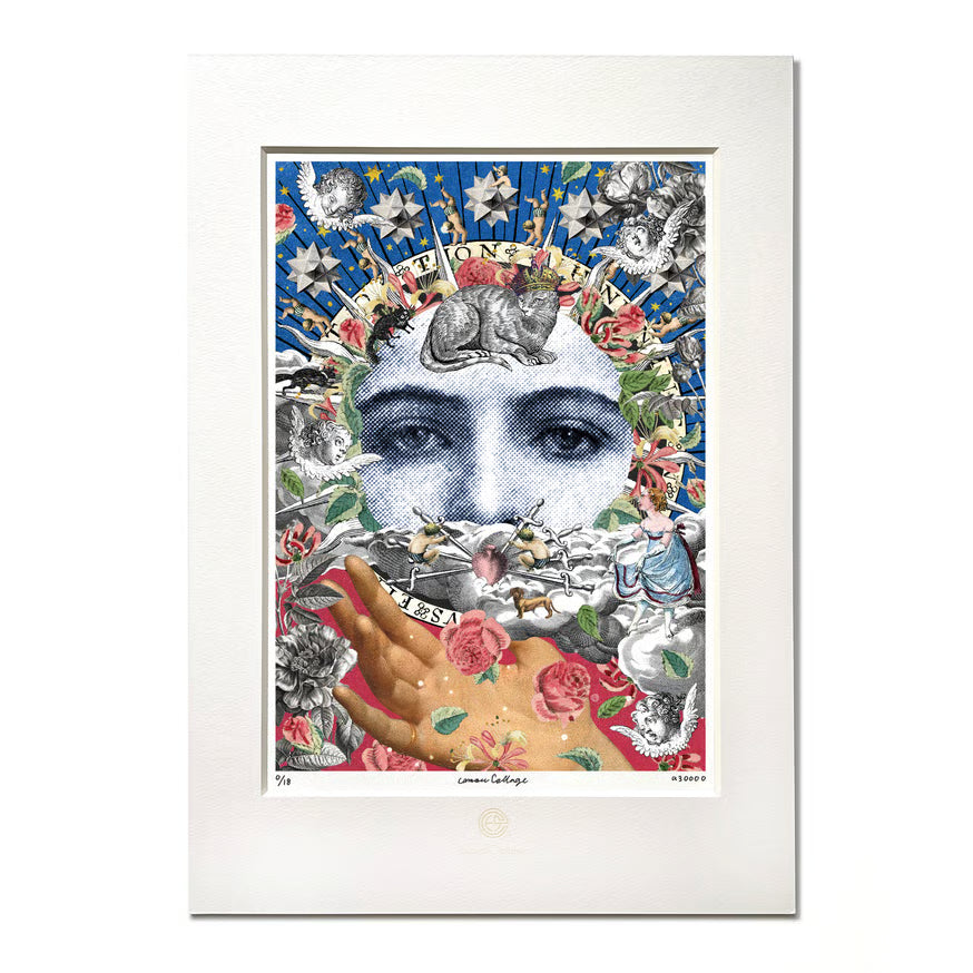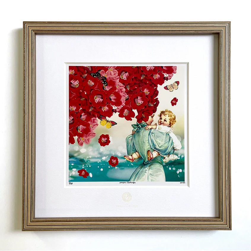 カモコラージュのオリジナル絵画は、異なる素材を組み合わせるコラージュ技法ならではの、