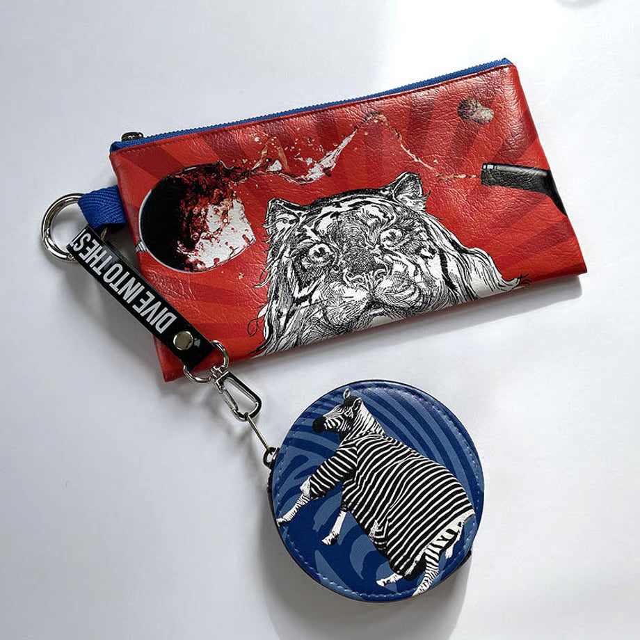 フラットポーチと同じく「カラフルポップ」をテーマにデザインされた、個性あふれるポーチ。