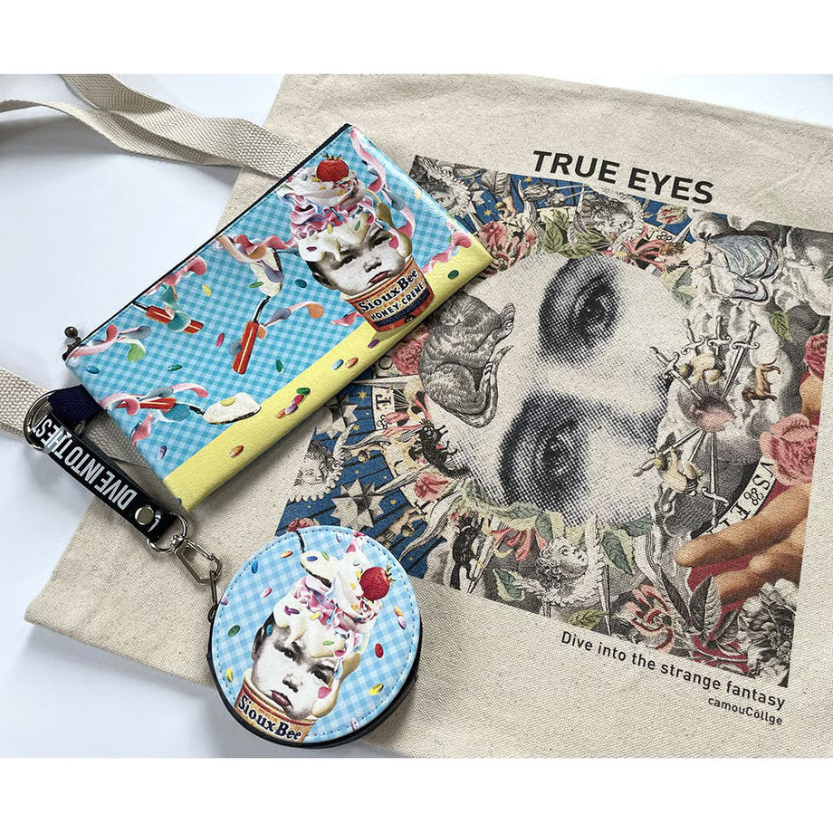 フラットポーチと同じく「カラフルポップ」をテーマにデザインされた、個性あふれるポーチ。