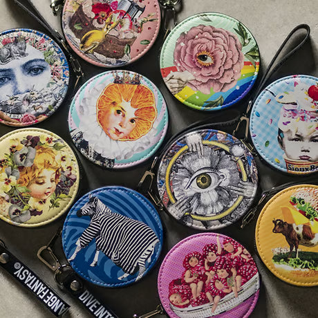 フラットポーチと同じく「カラフルポップ」をテーマにデザインされた、個性あふれるポーチ。
