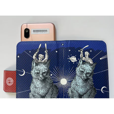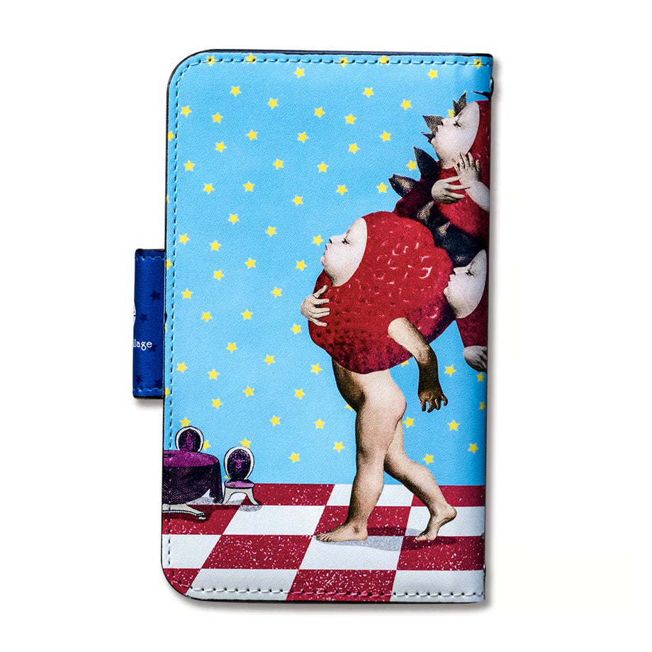 「カラフルポップ」をテーマにデザインされた、サイズフリーの手帳型のスマホケース。